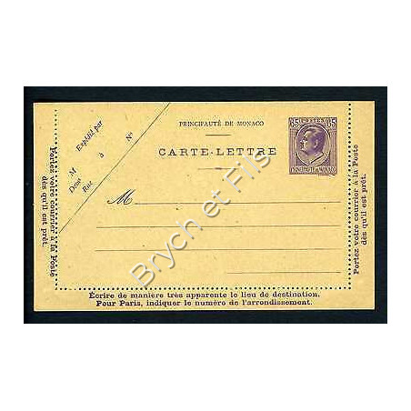 MONACO ENTIER POSTAL 1938 LOUIS II CARTE-LETTRE N°212