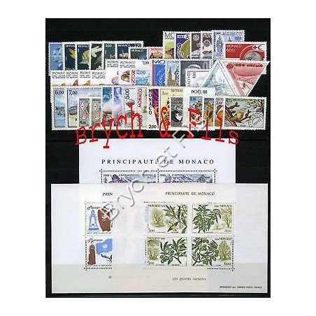 1988 MONACO ANNEE COMPLETE TIMBRES POSTE + PREO xx
