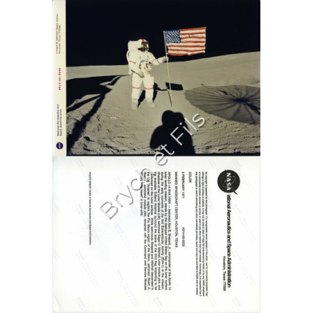 Astronaute Alan B. Shepard sur la lune posant près du drapeau U.S.