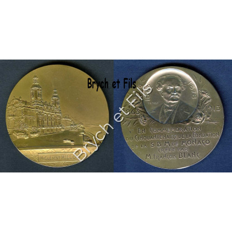 Médaille du cinquantenaire de la création de la S.B.M. (Société des Bains de Mer et Cercle des Etrangers de Monaco) par François Blanc en 1863. Un exemplaire avait été offert aux clients et à chaque employé de la S.B.M.